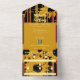 Simplify your wedding stationery with this bold modern sunset coral and gold sunflower all-in-one invitation. This striking design features artistic sunflower silhouettes with integrated coral accents and luxe striped patterns throughout. The convenient fold-out format includes your invitation details, wedding website QR code, RSVP section with meal choices and guest count, plus a built-in return address envelope—everything your guests need in one elegant piece.