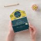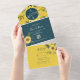 Faites plaisir à votre mariage grâce à notre invitation tout-en-un qui allie magnifiquement charme botanique et style boho moderne ! Doté d'un monogramme de tournesol et de tourterelles dessinées à la main, ce design rustique dans un jaune vif et vert émeraude donne le ton parfait. Un script manuscrit branché ajoute une touche personnelle, tandis qu'un code QR pratique fait de RSVP une brise. Personnalisez-le avec votre photo, les détails du mariage et l'image personnalisée sur le dos pour un souvenir vraiment unique!