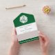 Apportez une touche de plaisir geek à votre événement avec cette carte tout-en-un et faire-part de mariage RSVP. À l'intérieur, vous trouverez un fond blanc à vingt côtés sur un arrière - plan vert riche au-dessus d'une section avec un exemple de texte qui peut être customisé pour votre journée spéciale. La partie inférieure de l'invitation est constituée d'une pièce amovible de taille carte postale qui contient un échantillon de texte RSVP placé au-dessus d'une bordure vert émeraude avec motif des d20 éparpillé dans le fond. À l'extérieur, une bordure semblable de dés à vingt côtés sur vert se trouve sous les zones où vous ajouteriez des timbres, des adresses standard et de retour pour l'invitation dans son ensemble et la section RSVP consignée. Le rabat utilisé pour plier et sceller la carte a un d20 unique sur un riche arrière - plan émeraude avec un échantillon d'initiales que vous pouvez customiser pour une touche personnelle finale qui montre votre amour pour le jeu de table et l'autre. N'oubliez pas de consulter le reste de l'ensemble Tabletop Chic in Green pour d'autres produits de coordination, y compris les étiquettes d'adresse de retour.