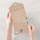 Le tout dans un faire-part de mariage avec une végétation botanique, des feuilles rustiques et une typographie élégante sur un arrière - plan bronzé. L'invitation comprend une carte RSVP perforée avec un code QR. Conçu par Thisisnotme©