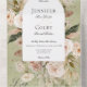 DISPONIBLE AVEC UN CODE QR OU AVEC OU SANS CHOIX DE DÎNER. Plongez dans la tranquillité de l'étreinte de la nature avec notre faire-part de mariage rustique, une fusion harmonieuse d'élégance intemporelle et de charme rustique. Dans un cadre vert et apaisant, cette invitation dégage un sentiment de beauté sereine, vous invitant à entreprendre un voyage d'amour entouré par la splendeur du plein air. Décorée d'une couronne fleurie de fleurs de bronze, crème, beige aquarelle et feuillage vert sauge sous une arche blanche immaculée, avec texte de police classique, cette invitation est un chef-d'oeuvre de sophistication sous-estimée. Chaque pétale murmure des contes romantiques, tandis que les teintes douces évoquent un sentiment de chaleur et d'intimité qui est parfait pour célébrer votre journée spéciale. Séduisez vos invités dès qu'ils reçoivent votre invitation et préparez la scène pour un mariage aussi enchanteur qu'inoubliable. Créé par Simply Farmhouse Press.