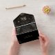 J'ai bien reçu ma commande tout et était parfait jusqu'à se que je retourne mon faire part il on pas cadré le papier à l'impression. Je pensé que c'était de ma faute, mais sur ma réalisation sa n'apparaît pas, j'avais fait faire 1 seul prototype pour essayer, on aime beaucoup le style, la matière... j'aimerai bien recommander mais pas avec ce petit défaut. .