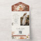 Charmant invitation tout-en-un mariage de automne avec des tons romantiques en terre cuite, aquarelle, art floral et section RSVP intégrée. Inclut une zone photo et un code QR pour des réponses faciles. Parfait pour les mariages boho avec une ambiance rustique ou botanique. Remarque : Cette invitation tout-en-un nécessite une enveloppe distincte pour l'envoi. Nous vous recommandons de l'apparier avec une enveloppe A9 standard (5,75 po x 8,75 po) pour un meilleur ajustement.