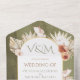 Elégante Terracotta, Crème et Khaki Feuilles de palmiers séchés et orchidées florales le tout dans une invitation de mariage qui inclut les informations mariages et carte postale RSVP que vos invités déchirent et envoient. Les enveloppes ne sont pas nécessaires. Idéal pour un mariage boho, tropical, jungle, désert ou neutre !