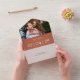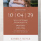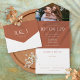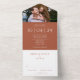 Un élégant minimaliste en terre cuite tout en un faire-part de mariage avec votre photo, date spéciale et détails mariages ensemble dans la typographie classique et chic. L'invitation comprend une carte RSVP perforée qui peut être adressée individuellement ou laissée en blanc pour que vous puissiez écrire à la main les coordonnées de votre invité. Conçu par Thisisnotme©