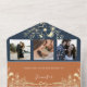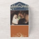 Elégant, moderne, bleu marine et terre cuite tout-en-un faire-part de mariage avec coeur de corde or, dentelle dorée fleurie et personnalisées quatre images du couple. Ajoutez vos 4 photos, votre site web et votre code QR - pour RSVP et plus d'infos.