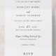 Elegant all in one wedding invitation featuring a simple design with your event details in serif and script fonts. Attached RSVP card includes meal choices for your guests.