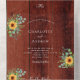 Bois brun rustique comme arrière - plan décoré de tournesols aquarellés, végétation d'eucalyptus. Personnalisez et ajoutez vos noms, monogrammes et détails mariages.