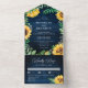 Invitation Tout En Un Tournesols rustiques Mariage bleu marine