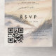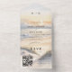 Surprenez vos amis et votre famille avec ces invitations modernes et branchées tout en un mariage, avec illustration de plage tranquille, texte personnalisé et code QR. Ajoutez facilement vos propres détails en cliquant sur l'option "personnaliser".
