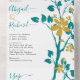 Invitation Tout En Un Turquoise rameau bleu et or avec fleurs mariage