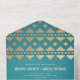 Cette invitation tout en un événement présente un faux motif de style Aztec en feuille de bronze avec une typographie facile à customiser dans un agencement simple et propre, le tout contre un arrière - plan bleu turquoise texturé subtilement. Personnalisez cette invitation pratique avec une carte postale de réponse déchirante en changeant la couleur de l'arrière - plan pour répondre à vos besoins et créez une invitation unique à l'événement avec le style du moment Southwestern Boho.