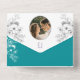 Faites de votre fête mariage une expérience inoubliable grâce à notre invitation tout-en-un moderne et élégante, dans des tons turquoises et violets turquoise. Décorée de dentelle florale moderne en argent de boho et des initiales monogrammes du couple, cette invitation est un véritable reflet de votre style. Votre photo occupe le centre de la scène, tandis qu'à l'intérieur, trouver tous les détails à côté d'une option RSVP pratique et le lien du site Web. Rejoignez-nous alors que nous nous embarquons dans ce voyage d'amour et de convivialité, où chaque instant est aussi vivant que nos couleurs.