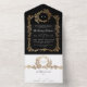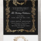 Invitation Tout En Un Tuxedo Black Gold Botanical Wreath Classic Mariage