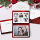 Design de collage multi-photo classique chic et très élégant avec modèle avant pour cinq photos carrés, calligraphie "Love & Joy" personnalisée et champ de texte avec arrière - plan rouge rubis style métallique imitation martelé. Il propose également des modèles photo supplémentaires et des arrière - plans rouges complémentaires.