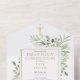 Le tout dans une première invitation de communion sainte avec d'élégants feuilles botaniques aquarelle verdure et une bordure d'or chic. L'invitation comprend une carte RSVP perforée qui peut être adressée individuellement ou laissée en blanc pour que vous puissiez écrire à la main les coordonnées de votre invité. Conçu par Thisisnotme©