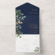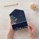 Cette verdure de Noël moderne | sceau marine et envoyer tout en une seule invitation est parfait pour votre simple mariage d'hiver boho. Conçu avec une feuille d'or imitation géométrique et une aquarelle botanique minimaliste avec des touches d'eucalyptus vert et d'airelle rouge. Le tout sur un arrière - plan bleu marine classique. Ces éléments lui confèrent une atmosphère moderne et élégante, qui ne manquera pas de compléter le look recherché ! Vous pouvez personnaliser avec vos propres photos ou le garder tel quel. N'oubliez pas de parcourir le reste de la collection pour compléter votre thème mariage !
