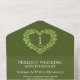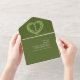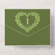 Les invitations RSVP détachables pour la fête du 1er anniversaire de mariage peuvent être scellées de sorte qu'aucune enveloppe n'est requise. De magnifiques invitations d'anniversaire de mariage avec un effet de pierre précieuse de péridot vert olive en forme de cœur, personnalisez avec les détails de votre fête d'anniversaire de mariage. Facilitez la tâche à vos invités et à vous-même en n'utilisant pas d'enveloppe, il suffit d'écrire sur vos invitations scellées et vos invités pourront répondre avec la partie RSVP détachable et apposer un timbre pour une réponse rapide et facile. Le premier anniversaire de mariage est associé à la pierre précieuse péridot et le cœur symbolise l'amour. D'autres articles assortis sont disponibles. Graphismes et conception de Sarah Trett pour www.mylittleeden.com et www.mylittleedenweddings.com