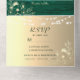Créez une expérience de papeterie de mariage chaleureuse et romantique avec cette invitation de mariage tout-en-un verte émeraude et dorée, conçue avec un panneau photo, une section de réponse intégrée et les détails du site web du mariage.