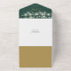 Le tout dans une seule faire-part de mariage avec de jolies lampes à cordes, des noms de style signature et une typographie or chic sur un arrière - plan vert émeraude. L'invitation comprend une carte RSVP perforée avec un code QR. Conçu par Thisisnotme©
