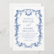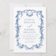 Invitation Tout en un Victorian Bleu Français Code QR Mariage