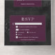 DISPONIBLE AVEC OU SANS CODE QR OU OPTIONS DE SÉLECTION DE DÎNER. Entrez dans un monde d'élégance sombre avec notre faire-part de mariage gothique captivante. Encadrée par un superbe papier peint vintage satiné noir sur noir damassé, cette invitation dégage un air de mystère et de charme intemporel. En haut, un vintage vin mauve violet, gris et noir caresse les initiales du couple, ajoutant une touche de splendeur royale au design. Les zones de texte continuent la belle couleur du vin. Avec un look vieillot qui respire le raffinement, cette invitation est un mélange parfait d'allure d'antan et d'attrait contemporain. Les initiales du couple sont également magnifiquement répétées à l'extérieur, préparant le terrain pour une célébration qui promet d'être aussi enchanteresse qu'inoubliable. Admirez le charme du passé et invitations de vos invités pour assister à un amour qui transcende le temps avec ce faire-part de mariage gothique captivant. Créé par Simply Farmhouse Press.