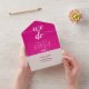 "We do" élégant script cursif style manuscrit calligraphie magenta fuchsia mariage rose tout en une invitation.