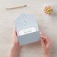 All-in-one wedding invitations to match our Whimsical Retro Blue Stripes Wedding collection. This design features a navy blue hand drawn frame against a light blue striped background. At the top of the invite, there is a doodle scribble illustration of a diamond ring in a seashell ring box. The details follow with the couple's names in charming script lettering. Ideal for summer, Italian, beach, yacht, and coastal wedding themes. This all-in-one wedding invitation folds into its own envelope, with your return address printed on the flap. The RSVP card can be separated, creating a full invitation suite in a single piece. View the collection linked on this page for the full wedding suite. Feel free to message me with any questions, I'll be happy to help!