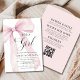 Célébrez dans le style coquette avec cette invitation tout-en-un baby shower avec un arc rose pâle, des tons pastel doux et un code QR intégré pour une RSVP facile. Une façon douce et élégante d’annoncer : "C’est une fille!"