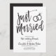 Après le grand jour et l'échange des anneaux, invitez vos invités d'honneur à un brunch matinal. Cette invitation comporte les mots "juste mariés" en lettres calligraphiées fantaisie. Sur le côté, se trouvent une paire d'alliances. Sous ce graphique unique se trouve un espace pour vos propres mots et informations pour votre événement post-nuptial. Tous les éléments de cette invitation sont déverrouillés et ajustables, alors amusez-vous à être créatifs et à la personnaliser.