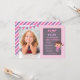 Cette invitation à une petite fille mignonne avec des queues de ponytail sautant joyeusement sur une invitation conçue pour ressembler à un trampoline géant. Des drapeaux de rabat décorent le côté photo du invitation. Idéal pour une partie de jeux ou de trampoline ! La palette de couleurs des roses et des violets rend ce invitation idéal pour les filles d'anniversaire ! Personnalisez-vous facilement avec les détails de votre fête. Pour ajuster la photo à la meilleure position, passez en mode personnaliser et déplacez la photo en conséquence,