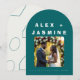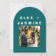The Aesthetic: Make a sophisticated statement with our signature arched wedding invitation. This design features a striking color-block of Transformative Teal—the hero hue of 2026—set against a crisp, modern off-white. The front showcases bold, editorial-style typography that commands attention, while the reverse side reveals a "Digital Futurism" geometric motif, providing a sophisticated surprise when guests flip the card over.