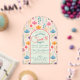 Cette belle invitation pour un anniversaire de seize ans avec une forme d'arche et de petites fleurs multicolores printanières est très tendance avec une douce palette de couleurs.