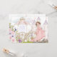 Cette invitation chère présente une princesse brune debout près d'un cadre de char royal qui entoure tous les détails de la fête amusante. Le dos de cette invitation a un château de coordination. Les couleurs comprennent : rose, violet, lavande, gris et vert. Vous pouvez personnaliser avec tous les détails de votre fête. Parfait pour thème princesse ou thème château !