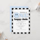 Cette joyeuse invitation à l'anniversaire de premier anniversaire de l'homme présente une police rétro amusante et un visage souriant bleu avec un arrière - plan à damiers. Cette invitation est parfaite pour votre petit homme pour fêter son premier grand anniversaire ! Associez-vous à tout ce qui se trouve dans la collection TRAVIS pour un look cohésif.