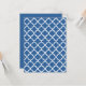 Un élégant treillis marocain en tuiles un peu rétro, motif en blanc sur bleu cobalt, l'une des couleurs mode les plus populaires de l'année.