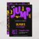 Préparez-vous à sauter dans une célébration pleine de plaisir avec cette invitation d'anniversaire sur le thème d'une fête sur trampoline vibrant ! Avec des couleurs néon violet et jaune, des motifs de peinture éclaboussée et des graphiques ludiques, cette invitation donne le ton pour une fête excitante et active. Parfait pour les enfants qui aiment rebondir, jouer et s'amuser. Personnalisez-la avec le nom de l'enfant, son âge et les détails de la fête pour créer une invitation mémorable. Le verso présente un design de peinture éclaboussée lumineux et coloré qui complète parfaitement le thème. Parfait pour les fêtes en parc de trampolines ou en soirée néon !