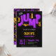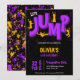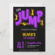 Préparez-vous à sauter dans une célébration pleine de plaisir avec cette invitation d'anniversaire au thème de fête sur trampoline vibrant ! Avec des couleurs néon violet et jaune, des motifs de peinture éclaboussée et des graphiques ludiques, cette invitation donne le ton pour une fête excitante et active. Parfaite pour les enfants qui aiment sauter, jouer et s'amuser. Personnalisez-la avec le nom de l'enfant, son âge et les détails de la fête pour créer une invitation mémorable. Le verso présente un design de peinture éclaboussée brillant et coloré qui complète parfaitement le thème. Parfait pour les fêtes en parc de trampoline ou en soirée néon !
