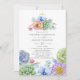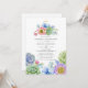 Eau vive première invitation de communion sainte avec fleurs roses et violettes, succulents et feuilles d'eucalyptus.