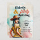 Un amusant 30e anniversaire modèle d'invitation pour les femmes avec un thème occidental, avec un croquis avec des accents d'aquarelle d'une belle femme portant un casquette cowgirl, dans une pose flirty, avec le titre "trente et flirt et prospère". Un amusant invitation de 30e anniversaire pour une femme à son trentième anniversaire.