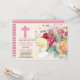 Belles invitations à la Communion catholique pour les filles avec croix florale et fleurs en couleurs rose, violet et blanc. Elles sont si jolies et idéales pour vos filles événement spécial. Les polices manuscrites ajoutent un élément moderne et tendance tout en assurant une élégante invitation à la Sainte Communion. Vous pouvez modifier le texte comme vous le souhaitez. Pour obtenir de l'aide et des articles correspondants, contactez le concepteur via l'onglet ci-dessous.