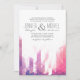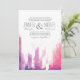 Cette élégante faire-part de mariage moderne présente une aquarelle géométrique dans les tons rose et violet.