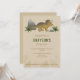 L'illustration originale et mignonne de Destei d'un dinosaure Triceratops avec des roches grises et des plantes vertes. La couleur de fond est beige et le bas comporte des silhouettes de plantes modernes charmantes qui donnent au design un détail supplémentaire. Au milieu, il y a de l'espace pour un texte personnalisé.
