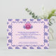 Un joli portrait de triceratops rose et violet flanqué de feuilles abstraits et violets décore cette invitation fantastique à l'anniversaire, qui est parfaite pour une petite fille.