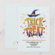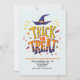 Une invitation amusante pour Halloween avec un chapeau de sorcière, des bonbons et de grandes lettres qui écrivent TRICK OR TREAT. <a href='https://www.freepik.com/free-vector/trick-or-treat-halloween-lettering-design_2942827.htm'></a>Conçu par Freepik<br/>(). <br/>La carte est facile à personnaliser avec votre texte, police et couleur de police.<br/><br/>Pas exactement ce que vous cherchez ? Tous nos produits peuvent être conçus sur mesure pour répondre à vos besoins sans frais supplémentaires.<br/><br/>Contactez-nous simplement à askcottonlamb@gmail.com.<br/><br/>Produits coordonnés disponibles : demandez-nous !