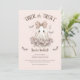 Invitation tes petits gouls et gobelins de la façon la plus douce possible avec cette adorable invitation de fête d'Halloween rose avec une fille fantôme en tenue frileuse avec un arc! Parfait pour les soirées costumées pour enfants, les soirées Halloween ou les célébrations en salle de classe, cette invitation ajoute une touche de charme kawaii et des vibes éffrayantes pastel à vos projets d'Halloween. L'avant est orné d'un arrière - plan rose pâle, d'un fantôme girly en robe frileuse et d'un noeud de polka, et l'arrière d'un motif Leopard rose pastel. Entièrement personnalisable avec les détails de votre fête. Idéal pour les fêtes d'anniversaire, les nuits de ruse ou les réunions de sculpture de citrouilles. Que vous planifiez un boo-tiful bash, une soirée costumée, une pizza et un bonbon, cet invitation donne le ton pour un moment amusant, festif et légèrement éffrayant ! L'option de téléchargement numérique est disponible.