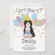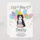 Faites de votre voyage d'anniversaire en Tibétain Terrier, votre trio noir, grâce à notre adorable design sur le thème du chien avec un casquette de fête et des ballons colorés. Personnalisez cette amusante invitation d'anniversaire avec le nom et l'âge de votre chien pour une fête de queue !