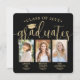 C'est une triple fête de graduation ! Annoncez la réussite de trois diplômés et de la famille et des amis invitations à célébrer avec des invitations costumées à la fête de remise de diplômes carrés photo. Toutes les images et le libellé sont simples à personnaliser, et les couleurs peuvent être customisées à l'aide de l'outil de design Zazzle. (CONSEIL EN MATIÈRE DE PLACEMENT D'IMAGE : Une façon simple de positionner une photo exactement comment vous voulez est de la rogner avant de la télécharger sur le site Zazzle.) Ce modèle est une carte de faire-part combinée sur le devant avec l'invitation de la grande fête sur le dos. Le design moderne en noir et or présente une calligraphie manuscrite avec un casquette en carton de mortier, une typographie classique élégante et 3 photos de votre choix, telles que des images de haut niveau ou des images de la cérémonie de début. Veuillez noter que l'or est imprimé en couleur et non en métal. Cette carte d'invitation à la remise des diplômes est une façon élégante d'annoncer une fête spéciale pour n'importe quel élève de trois niveaux, comme les frères et soeurs, les meilleurs amis, les cousins, les triplets, les coéquipiers, les frères et soeurs, etc. Félicitations aux diplômés !