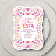 Mariachi, margaritas et souvenirs ! Lancez la fête avec ce design de fêtes folkloriques mexicaines. Le texte coloré et l'oeuvre d'art (dessinée à la main par Lively Scribe) donnent à ce design une ambiance fantaisiste mais élégante. Parfait pour les latins de votre vie. Ou une fête qui se trouve juste à côté du Cinco de Mayo ou de Dia de los Muertos. Commandez vos invitations imprimées et les fournitures de fête ou téléchargez vos invitations numériques dès maintenant pour une journée qu'ils n'oublieront jamais !