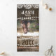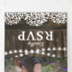 Une invitation de remise de diplôme de style rustique country 2 en 1 en forme de trifold avec un fond de tonneau en bois rustique, des guirlandes lumineuses, un motif floral délicat de babys breath, des photos du diplômé, l'année de la promotion, les détails de la célébration de la remise de diplôme et une carte-réponse pour vos invités à détacher et à renvoyer.